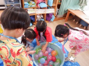 今年の夏はすごく暑くて、なかなか外に出られない日が続きましたが、園内でお祭り気分が味わえたので、子どもたちもとても楽しそうでした😆💖