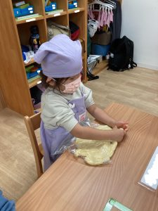 今日はクッキー作りにチャレンジしてみました✨生地に入っている物をみんなに問いかけてみると、「バター!」「牛乳!」「小麦粉!」「砂糖!」と全部子どもたちが当ててくれました🥰