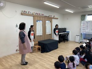 絵本から紙芝居まで、たくさんのお話を見せてくれました🥰子どもたちも一緒に声を出したり、集中してお話をよく聞いていました✨
