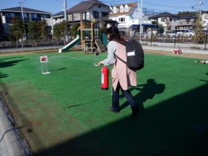 先生たちの訓練ではあるけれど、どのように消火器を使うのかを子どもたちも一緒に見ることで、少しでも興味を持ってくれたかな?😊✨