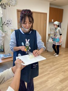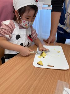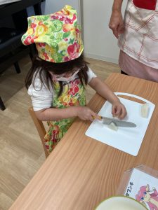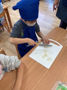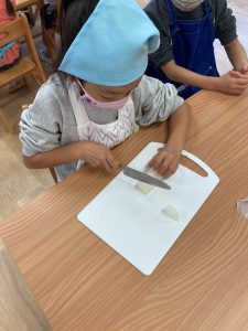 ひかり組さんは、大根を切りました。何度も使っている包丁なので、だんだん上手になってきましたよ🥰