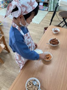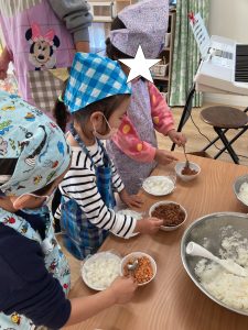 今度はおにぎり作り😊自分の好きな具を入れることにしました✨