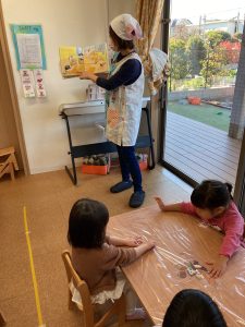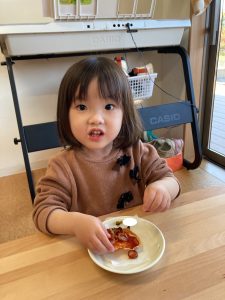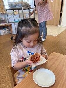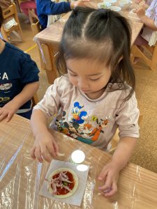 「こねこねピッツァ♪こねピッツァ♫ねこ~がこねこね ねこピッツァ♫」の歌もとっても上手に歌ってくれたみのり組さんです。是非おうちでも聴いてみてくださいね😍