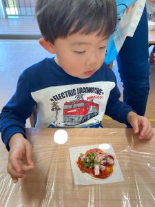 みんなのピザも焼けました!自分でトッピングしたので、特別美味しく感じるね✨
