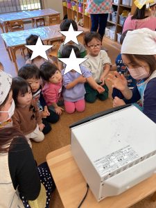 まずは先生のピザがどんなふうに焼けるかみんなで見てみよう👀✨