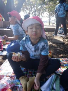 鶴間公園までは長い道のりだったので、公園に到着してからおやつを一つ食べて💨ちょっぴり休憩✨「さあ、いっぱい遊ぶぞ~!」